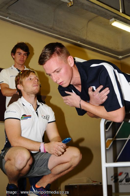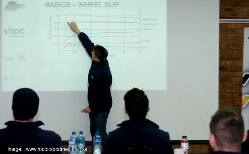 Following a tough physical assessment at the University of Pretoria High Performance Centre, the drivers were split into two groups of nine, alternating between the lecture room and the skid pan, where they were exposed to the limits of traction, braking and vehicle dynamics, before a gymkhana in the afternoon. Classroom activities included sessions on dealing with interviews and the media, self promotion and personal image; sponsorship and the psyche of the racing driver.